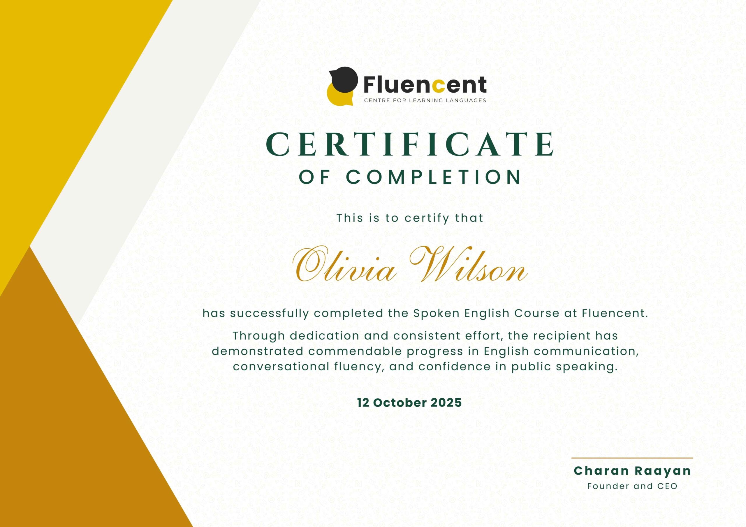 Do I get a certificate after completing the Fluencent spoken English course?